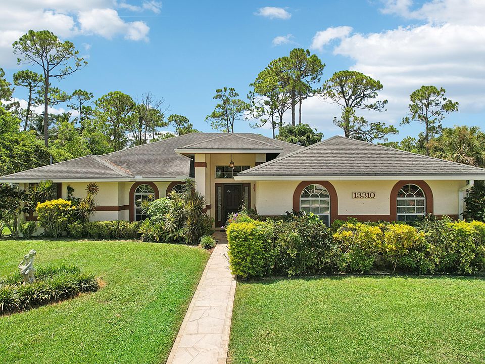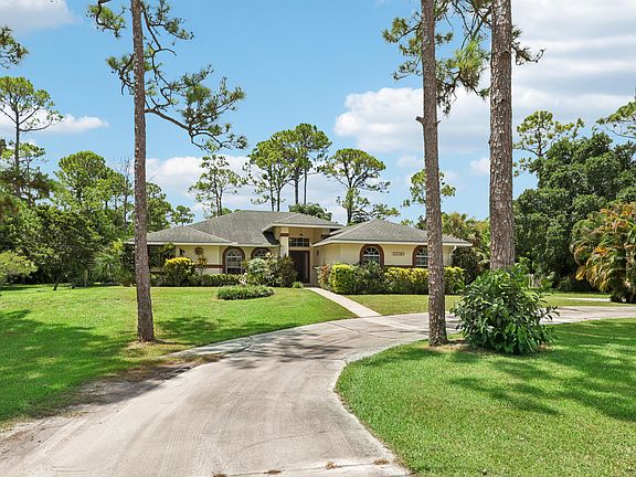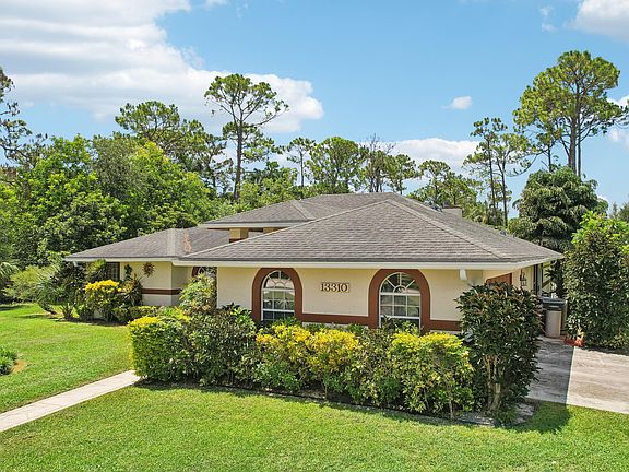 Discover this incredible 3-bedroom, 2-bathroom CBS pool home situated on a high and dry 1.15-acre lot. As you pull into the circular driveway, the charm of this special house is immediately apparent. The great room boasts high ceilings, The modern kitchen features white cabinets, granite countertops, and stainless steel appliances. a wood-burning fireplace, and French doors that open to the patio. Pride of ownership is evident in every detail, from the meticulously maintained interior to the serene outdoor spaces, with patio and crystal clear water in the large screened in pool. The backyard is an oasis with a firepit and a trellised swing area. planted fruit trees include avocado, loquats, plantain adorn the lush tropical foliage. In the acreage area, no HOA space for fun and toys.