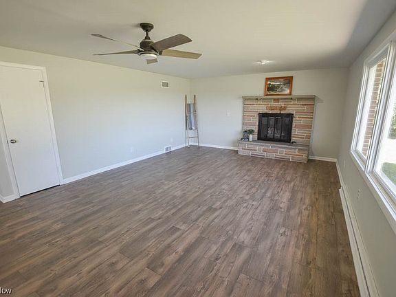 Surrounded by farmland without a neighbor in sight sits this beautifully remodeled all brick ranch featuring 4 bedrooms and 2.5 baths! The covered front porch is the perfect spot to relax and enjoy the country views.  Step inside to the living room with a propane gas fireplace as the focal point. The open concept keeps everyone connected to the eat-in kitchen complete with granite countertops, bright white cabinetry and stainless steel appliances.  In the hall leading to the attached two car garage you'll find a laundry room plus a half bath with a convenient pantry storage closet. The oversized garage includes new door openers, glazed tile walls, and access to the covered patio.  Three bedrooms are on the main level including the primary bedroom with double closets and a private full bath with separate vanities. Secondary bedrooms share the main full bath with a tub/shower with tile surround in the hall.  Even more living space can be found in the lower level adding a spacious rec roo