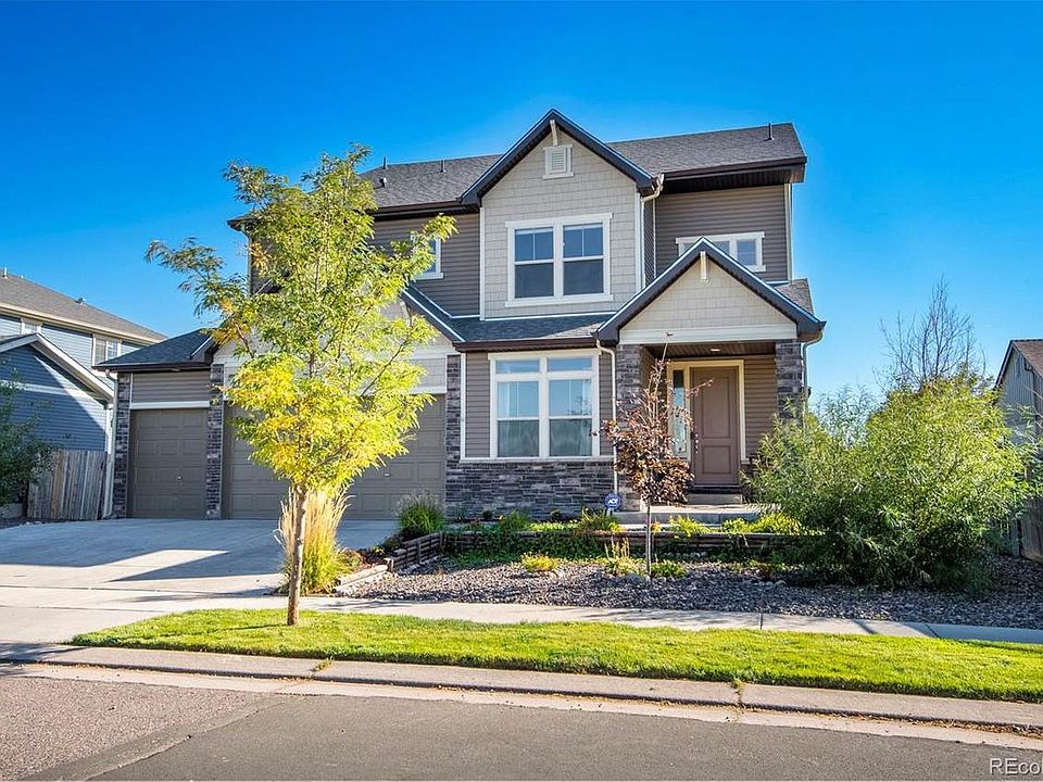 Have you been looking for a home where your family can really spread out? On four levels? This home has so much to offer! Four bedrooms PLUS an office. You will love the open floor plan the minute you walk through the 8 ft front door! The kitchen is bright and sunny with large windows, tons of cabinet space, and a huge walk-in pantry. The large kitchen island has additional storage space and is a great place to entertain. Newer stainless steel appliances including a large gas stove, make this kitchen a chef's dream! All four bedrooms are on the second level. The second level also features an office that could easily be turned into a 5th bedroom. The master bedroom has a new barn door for additional charm and privacy. Master also features a large walk-in closet with shelving and a 5 piece master bath! The 3rd level offers a great space to use as a rec room, theatre room, or even a home school area! The basement is ready for your design with rough-in plumbing, extra crawl space, and 9 ft ceilings! If the interior isn't enough, wait until you see the size of the backyard! Almost 1/4 acre! Owners have lovingly built garden boxes and added a few ornamental trees along with a new storage shed for the gardener in you! Great location right across the street from a great park and Turnberry elementary. 15 minutes to DIA and only 30 minutes to downtown Denver. Easy access to E-470 and Hwy 76!