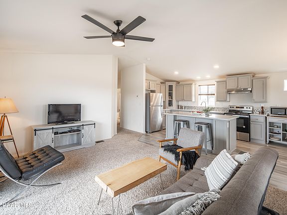 Super cute property offering country living on a paved street! Home features upgraded solid surface countertops, cement board (fire proof) siding, perimeter pipe corral fencing, detached garage, privacy fenced patio area, a shed & so much more. This property is an amazing gem you will not want to miss!
