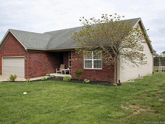 Tired of renting? Looking for a starter home or ready to downsize? Call now to check out this charming 3 BR, 2 BA ranch home with 2-car garage in Sunset Hills. This one will not last long! Only 5 miles from I-65 and Deam Lake. Just minutes from Covered Bridge Golf Club. Only a short commute to Louisville, but off the beaten path. Enjoy a cup of coffee on your covered front porch or catch some rays on your uncovered back patio. Back yard is a nice size for kids, and the fenced area is great for small pets. Home has an open feel with wood flooring in the main areas and vaulted ceiling in the family room. Kitchen has natural cabinets, tile backsplash, a small breakfast peninsula and dining area. Split bedroom design features a master BR with walk-in closet and master BA. Laundry room has a handy utility sink and is conveniently located outside the master BR. Finally, for peace of mind, how about 8 security cameras and 1-yr. Home Warranty! Great home for the price!