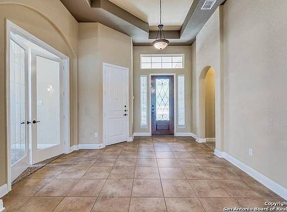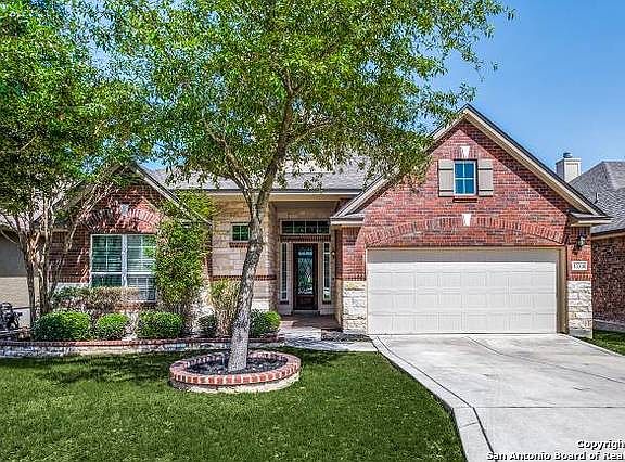Stunning Helotes home in a gated community! This single-story plan is spacious and light-filled. The island kitchen boasts stainless steel appliances, granite countertops, and gas cooking. The master bedroom boasts a well-appointed en suite bath with separate vanities, garden tub, shower, and nicely-sized closet. Secondary bedrooms are generously sized. Separate office with French doors can be used as a flex space. Convenient to major highways, shopping, and dining. Excellent schools are a bonus!