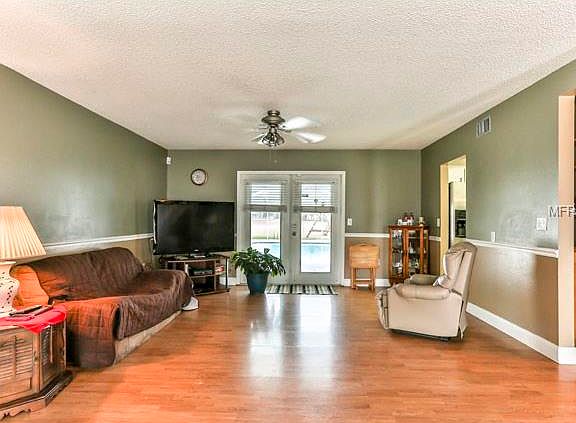 If size is what you need - look no further! This custom built 2 story home features 5 bedrooms, 2.5 bathrooms and a 2 car detached garage - connected by a covered breezeway. The large great room is complete with a fireplace for the occasional chilly night. Other features include laminate wood flooring and ceramic tile throughout, breakfast nook off the kitchen and a bonus room. Sitting on almost a half acre corner lot with a no build area behind it. Relax out on the lanai and enjoy the summers in your very own screen enclosed pool! All this, with a fenced in backyard too!