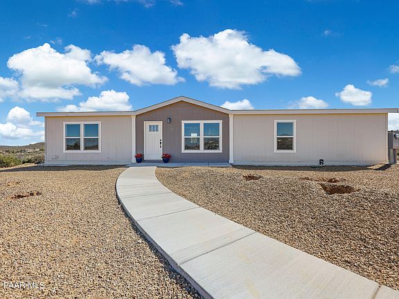 VIEWS! VIEWS! VIEWS! NEW Never lived in manufactured home situated on 1.03 acres! The upgraded kitchen offers 2 toned cabinets, a kitchen island, stainless-steel appliances and hood. The floors are quality luxury plank vinyl. This home offers a split floorplan with 4 bedrooms 2 baths. The large master bath has double vanities, and a large shower. The guest bathroom offers a bathtub and is very spacious too! Quiet rural neighborhood yet 25 minutes away from shopping and amenities in Prescott Valley. Come see for yourself. This home will not disappoint!!