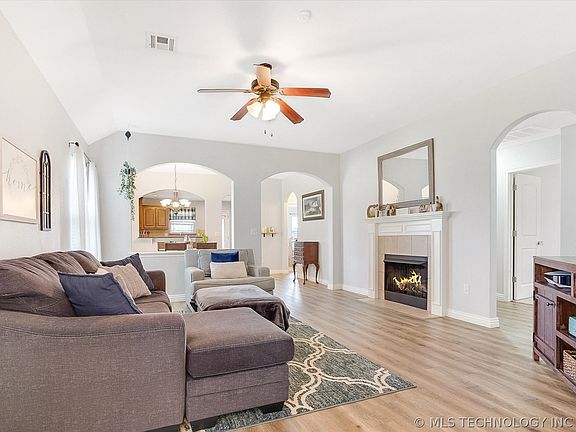 PRICE IMPROVEMENT!!! Great home nestled in the resort like neighborhood of Providence Hills. You will walk into an entry that leads to a spacious living area open to a separate dining space and large kitchen. Tons of granite counter tops great for prepping all those meals, undermount sink and tons of beautiful kitchen cabinets. This home has a well designed floor plan with 4 large bedrooms, master split from guest rooms, large laundry room and an extra deep garage. Lovely landscaping, newer flooring through out, newer paint and more. Neighborhood is rich in amenities and includes pool, clubhouse, 2 splash pads, 2 parks, 3 stocked ponds, walking trails and many social events. This home is a must see and is in the great Bixby school district.