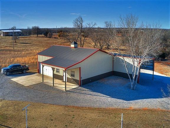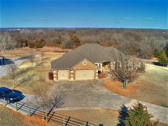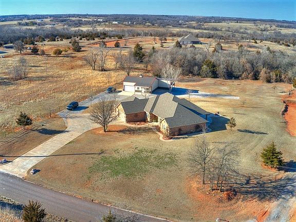 Custom-Built Acreage Home offers privacy, scenic outdoor living and a 30X40 Shop and RV Storage on 2.42 acres. Large open concept with great viewing windows throughout the home; Meticulously crafted alder wood cabinetry & trim work; Chef's kitchen w/walk-in pantry, island, granite, 5-burner gas stove, pullouts and soft-close drawers; Luxurious master suite w/fireplace, Roman shower w/double shower heads, walk-around closet, vanity extras; Study w/ a wall of custom built-in cabinets & filing drawers; Great room w/ corner fireplace and entertainment center w/hidden control room; Large patio w/firepit and concrete sidewalks surrounding the home; Beautifully landscaped w/irrigation in the flowerbeds; Oversized 3 car-attached garage w/storm shelter; Insulated shop (30X40) w/heater, 2-car garage, loft and separate exercise room; RV Storage lean-to (20X50). Located south of Blanchard w/close access to Hwy 39 and Hwy 76. Only 20 min. to south Norman.