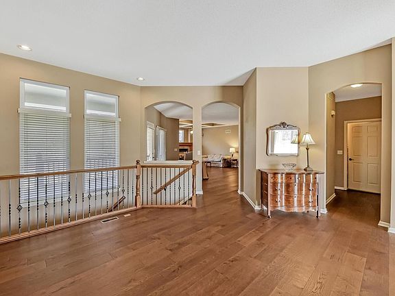 First things first. Top-of-mind for this awesome house is its location, backing up to a beautiful and dense tree line edging the Redbud Trail, an old railroad line now paved and ready to take on your hike or bike. It's an awesome feature! The one-owner home is a 5BR/3BA with 3-car garage. Another top-of-mind perk is that the only carpet in this home is on the basement stairs. The main floor gathering spaces and bedrooms have wood floors and the entire basement flooring is new, durable cork-backed LVP. Main floor features both formal and informal dining and living spaces. The kitchen offers brand new appliances (Feb 2022), walk-in pantry, buffet bar and space for bar stools at the counter. Kitchen overlooks the hearth room with coffered ceilings and built-in cabinetry. A split bedroom plan, master offers separate 6' jacuzzi tub and shower, large vanities and walk-in closet. Walkout/viewout basement is a spacious addition to the living areas. Here, find a family room with wet bar, a game room, a separate office along with 2 bedrooms and bath. Outside enjoy the new built-in kitchen featuring a Napoleon gas grill. The area includes a dedicated gas line to the grill, electric hookups, running cold water and a solar-lighted umbrella. Rugs can convey. Wrought iron fence with lifetime warranty was replaced just a few years ago and includes a gate to the tree line where one can enjoy nature's delights. Adirondack chairs and hammock in the tree line will convey. Find updated HVAC system and a tankless hot water tank. In the storage room, there's hookup for an air compressor that's located in the garage. This is negotiable. Rocky Creek is an established neighborhood with mature trees, walking paths, green spaces and a pool and playground located in the award-winning Andover School district.
