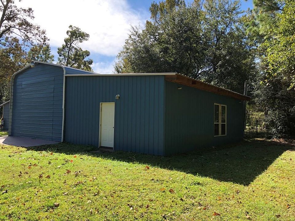 Don't be fooled by the pictures, this is not a workshop, the blue building you see is the actual home which has recently been converted to 3 bedrooms with laminate & concrete flooring. Landlord has blown in foam insulation in the 2 bedroom & living area addition of the building that will keep it energy efficient. Central a/c throughout with an added window unit in living area that will keep this home very cool & comfortable in the summer. Great country home in peaceful setting!