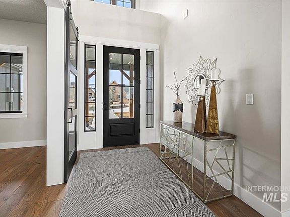 Welcome to the distinctive "Mother's Nest' - a multi-functional, multi-generational design by Cotner Building Company. This unique floorplan offers a 769 SF Guest Quarters/In-Law Suite OR Apartment OR possible AirBNB; fully equipped with separate entrance, full kitchen w/Bosch appliances, living area, full ensuite, plus garage bay! Spanning over 4,063 SF, this home showcases top-of-the line contemporary interior elements and sits luxuriously on 1-acre corner lot in Lone Star Ranch with views of the Boise Mountains. Main dwelling boasts 3 spacious bedrooms + upstairs bonus room, 3.5 baths, a fantastic gourmet chef's kitchen featuring stylish custom cabinetry, large island, and built-in Thermador appliances. The custom finishes pour into the great room with vaulted wood beam ceilings, private den/office, spa-like owner's suite, and an outdoor living space built to entertain. This Cotner built home embodies luxury and style, lavished with the ultimate level of comfort.
