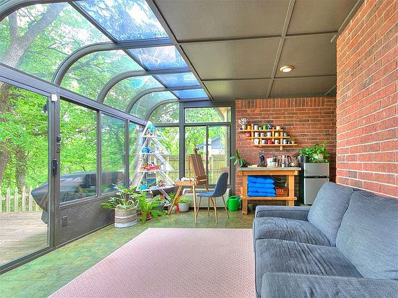 Discover this beautiful SE Edmond 4-bedroom, 2-bathroom home nestled in the heart of Edmond's desirable Northwood neighborhood. Built in 1984 and offering 2023'sq ft of living space on a 0.18-acre lot, this home combines modern upgrades with serene natural surroundings. Step into the inviting living area featuring a cozy masonry fireplace, provides a perfect setting for relaxation or entertaining guests. Which flows into a large, enclosed glass atrium room which has abundant natural light and amazing trees in a wooded private view. Also is a separate open area, currently the piano room but could easily be a study, reading area or extra space!