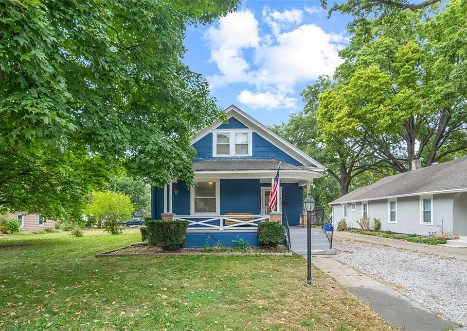 Welcome to this charming home nestled in the heart of Old Town Lenexa, full of timeless character and untapped potential. From the moment you arrive, you’ll appreciate the inviting front porch, perfect for relaxing and morning coffee or evening gatherings. Step inside through the vestibule entry, featuring a stunning leaded glass window, and you’ll be greeted by original woodwork, built-in window seats, and hardwood floors that speak to the home’s vintage appeal. The layout includes a formal dining room and spacious family room, offering a comfortable and traditional living space. A finished attic with an added nonconforming 3rd bedroom, provides valuable flex space—ideal for a home office, guest room, or hobby area. Off the kitchen, a large pantry/mudroom adds convenience and storage. Outside, the property boasts a huge yard and oversized detached garage—perfect for a workshop, additional storage, or future renovation.
