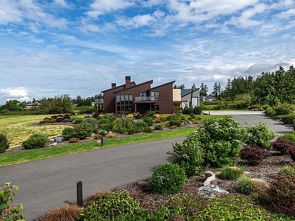 Award winning Calvin Jordan designed this home to meet the needs of the owners who wanted a sophisticated smart home that would be low maintenance, high security, and that could accommodate their 45' bus so that they could enjoy retirement and their time at this beautiful home. The setting is magical with gorgeous views of the bay and islands, acreage provides privacy, and the home has every detail planned and artfully executed. Read the descriptions of the photos to appreciate this gem.