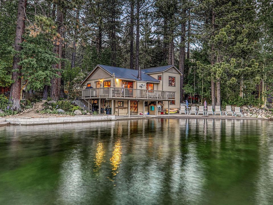 One of a kind legacy lakefront property boasting 100 feet of water frontage! The property hosts one of the early Donner Lake cabins amidst lush greenery and towering trees. The lakeside has a large dock which acts as a breakwater to provide a flat water setting in front of the private sand beach surrounded by beautiful landscaping. Set above the waterline is an outdoor stone patio, a fire pit, and an amazing rock and landscaped area from which to enjoy a bit of shade. The house itself is just a few feet from the water and has a remodeled kitchen and an inviting living room filled with natural light. The main living area of the home shows off the panoramic lake views and offers a cozy fireplace with old style knotty pine walls and ceilings. Sliding glass doors open onto the large deck which is even with the water line. All of the outdoor waterfront living areas provide panoramic lake and mountain views from the State Park in the east to Rainbow Bridge to the west. This means all day sun and you get to personally view sunrise to sunset from your own private retreat on the water! This amazing property offers lots of parking, a carport, and room to expand and remodel. The landscaping has a watering system, the home is generator ready, and the bottom level of the home has a workshop and storage area open to the beach and lake for easy storage of your summer gear. The arrangement of the waterfront amenities creates a private and calm lagoon-like setting for maximum enjoyment of all that the 100 feet of lakefront has to offer. The long dock is “L” shaped and blocks wave action to the west and there is a rockscaped prominence of land to the east which adds to the calm water area adjacent to the home. This gives you a perfect area to moor your boat in this protected area and for the family to enjoy swimming without wave action from the lake. The seawall provides stairs into the lake for easy access to swim and launch your kayaks and water toys. The private sand beach has room for the entire family with each on their own lounge chair. This is truly a one of a kind property. From the 100 feet to frontage, to the opportunities to expand and upgrade, this legacy parcel offers the best of everything that goes with Donner Lake waterfront living.