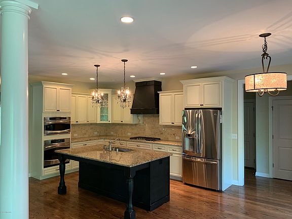 Designer French Country Karem Built home with fantastic views and incredible attention to detail in finish and fixtures. The sprawling 4 bedroom, 3 bath walkout ranch home features a gourmet kitchen, hardwood floors, stone accented fireplace, spacious master suite with HUGE walk in closet, a great walkout basement that is partially finished and a deck that overlooks a treed lot. The great room, dining area and kitchen combination are fabulous for family nesting or large scale entertaining. The 3.5 car side entry garage includes ample storage, a workshop area and parking for 3 large vehicles. Located in prestigious and much sought after Hillcrest in the North Oldham County School district, this is a great home for a family or empty nesters.