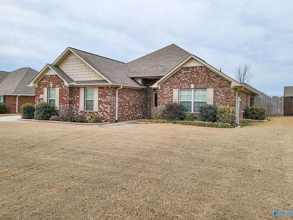 Great location! OPEN PLAN - 3 CAR GARAGE - Elegant Brick home with extensive trim. 3 bd / 2 bath, Isolated Master BR w/trey ceiling and his / her walk-in closet. Great Room features 10' ceiling, gas-log fireplace, extensive trim. Kitchen includes tile flooring, custom cabinetry, island, and a large pantry. Large dining area with 10' ceilings that is open to family.