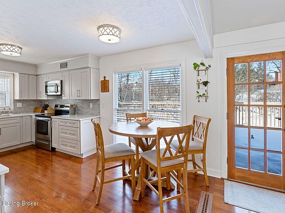 Welcome to your new home in Prospect! With plenty of living space and situated on a gorgeous park-like setting, this home is ideal for Oldham County living at its finest. Featuring 5 bedrooms and 3 full baths, there is ample square footage for your family. The main level is home to a large dining room, office, great room with cozy fireplace as the centerpiece, and open to a remodeled eat-in kitchen with a full complement of appliances. Down the hall, discover the primary bedroom with en-suite bathroom retreat, two additional bedrooms, and a full guest bathroom. The lower level provides even more living space with a family room, additional fireplace, third full bathroom, two more bedrooms and laundry. Outside, enjoy spending time on the new deck and take in the spectacular views of the large backyard. Come see this outstanding home today!