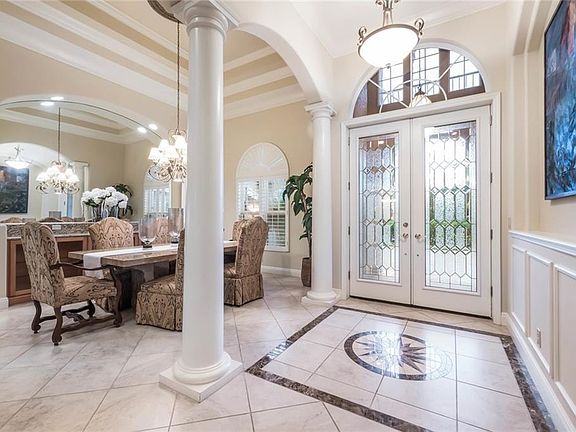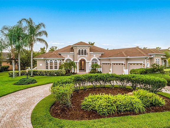A true embodiment of the country club lifestyle, this premiere three-bedroom estate rests majestically on over half an acre on a cul-de-sac lot within Lakewood Ranch Country Club, a prestigious golfing community that offers a life defined by timeless elegance and Florida splendor. An extraordinary home of exquisite architectural detailing, classical Mediterranean elevations set the tone in this one-story Peregrine home where a host of opulent living spaces envelop you in luxury from the moment you step in. Prepare for an evening of refined entertaining from the deluxe custom kitchen, before raising a toast with friends in the stately dining room - perhaps with cocktails prepared in the wet butler's bar. The formal living room includes a gas fireplace for an elemental ambiance. A comfortable den and oversized bonus room provide additional spaces for work or play. Retire for the night in the regal master suite, with tray ceilings, a wealth of windows, and spacious master bath. Step out though disappearing sliders from the family room to the beautiful outdoor area, where you will refresh in the heated pool with spa and entertain al-fresco in the summer kitchen, before capping the night by the glow of the outdoor fireplace. The preserve lot offers gorgeous nature views from every angle. The home's entry experience is equally spectacular with a grand circular driveway that leads to the oversized three-car plus golf-cart garage. Set in lovely Keswick, this spectacular home is the essence of elegance.