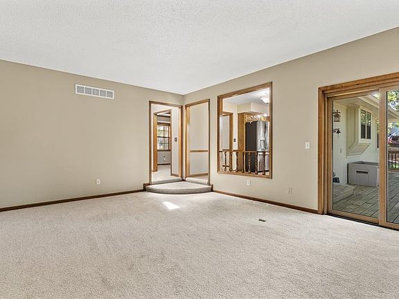 Hard to find Ranch home on cul-de-sac in Century Estates with exceptional proximity to highway access, Oak Park Mall shopping center, countless restaurants and more shopping! Driveway, front walkway and garage floor all fully redone in 2022! ALL NEW carpet throughout in addition to full fresh interior paint! Welcoming tiled entry is vaulted with large skylight window. Formal dining room has bay windows for additional natural lighting. Kitchen features granite countertops, motion under cabinet lighting, tiled backsplash, pantry, stainless steel appliances, extended dining, breakfast bar ledge and walk out access to the incredible raised sun deck- ideal for entertaining guests or grilling out! Laundry room/half bath is conveniently located on main level. Carpeted great room is quite spacious with brick fireplace framed by built in book shelves. All bedrooms are carpeted, primary bed featuring large bath and walk in closet. Finished walk out lower level has massive recreational room, full bath, 4th bedroom with massive walk in closet and a huge unfinished storage room. Backyard has privacy fencing, covered patio, treed landscaping and sundeck!