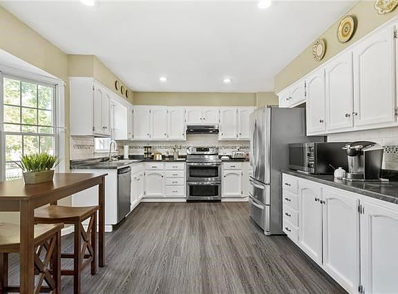 Stately 2-story in prime Lenexa location with 4 bedrooms, 2.5 baths, side-entry 2-car garage, and finished basement. Newer items include HVAC (6 months), roof ( 7 years young), Pella windows and low maintenance vinyl siding. There is room to roam with living room, formal dining & breakfast rooms and office on the 1st floor.Kitchen has new granite counters coming soon (samples inside) and all newer stainless steel appliances including stove, (double oven) dishwasher & refrigerator! All appliances remain including the washer & dryer. The finished lower level has family room, gaming area w/entertainment space, wet bar and bonus flex room/office. Mom's "dream" laundry room or hobby/craft area. Tons of storage complete with shelving and storage cabinet. Corner lot with fenced back yard, and quaint screened in porch. Additional updates/upgrades include: Newer carpet, LVT flooring, radon mitigation, fresh paint, wood floors, newer fixtures, backsplash updated baths and more! Better hurry! 2021-09-21