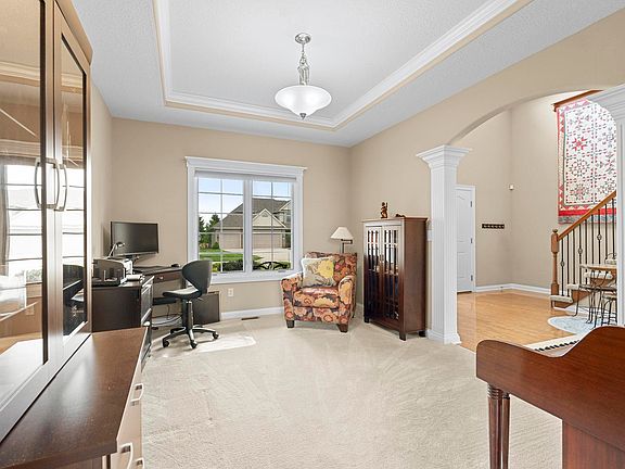 (Contingent Accepting Backup Offers) The one you have been waiting for with great curb appeal beautiful pond lot. Relaxing views from the deck with a great yard that is perfect for summer fun! Conveniently located to walk to schools with access to the Aboite Trails. Custom built unique floor plan with corner fireplace and metal/wood staircase. Amenities include; hardwood foyer, luxury vinyl plank and 6 panel solid doors. Love cooking in the kitchen with SOFT close doors, granite counters, tile backsplash, new faucet, newer stainless steel appliances including double oven range. All appliances remain PLUS washer and dryer in the main floor updated laundry room. Retreat to your primary en suite with heated floor, quartz counters and gorgeous tiled shower with rainfall shower head, jetted tub with tiled surround and custom black out shades. And there is MORE with the daylight finished lower level complete with media room/projector/screen/surround speakers and custom black out shades for the perfect theater experience. Wet bar with wine refrigerator and 1/2 bath plumbed for shower. Upper bath updated with custom quartz and new fixtures. Battery back up sump. Tons of storage. Freshly painted deck.