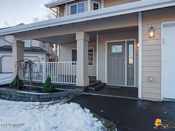 Enjoy beautiful mountain views from this exclusive Powder Ridge hm! Open concept liv space w/vaulted ceiling, updated kitchen, din area w/backyard access & a cozy gas FP. Seller has done many updates that include, new Trex decks, carpet, paint, appliances, newer heating system & tankless water heater! Backyard is fully fenced w/a garden.  Easy commute to Anchorage, Eagle River or the Valley!