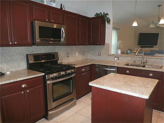 Lovely updated all brick home w/waterfront view! Beautiful hand scraped laminate wood floors flow through out. Kitchen has granite countertops, granite backsplash, stainless appliances w/gas cooktop, & breakfast bar w/pendant lights. Large dining room/family room combo w/fireplace overlooks backyard w/view of the lake. Master suite offers big walk in closet, granite countertops, double sinks, jacuzzi tub & separate shower. Refrigerator included SMALL DOGS ONLY
