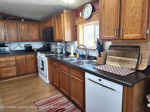 Updates include steel roof, furnace, air conditioning, water heater, water softener, well pump, well tank, the majority of the windows, siding, rear deck, insulation in attic, insulation in crawl space, weather sealing in crawl space, exterior water hydrants, crushed asphalt in driveway, stove, refrigerator, dishwasher, disposal, washing machine, & dryer.