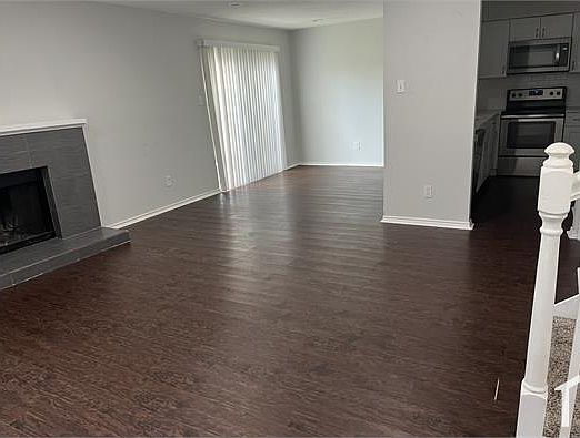 Wood burning fireplaceCarpet upstairsStainless appliancesUtility roomHalf bath located downstairsTwo assigned parking spots