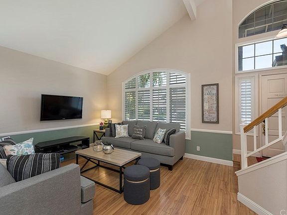 Welcome home! This is the home you don't want to miss. This wonderful 3 bedroom 2.5 bath is located in the Horsethief Canyon Ranch community. Once you step into this home you enter the living room with vaulted ceiling. The family room has a fireplace for you to enjoy during the winter time. The updated kitchen with subway tiles and recessed lighting has plenty of counter space for you to cook in. There is a half a bath located downstairs. Huge master bedroom with vaulted ceiling. Guest bedrooms have a Jack and Jill bath. 2 car garage with washer and dryer hookups. The backyard is spacious and low maintenance for you to BBQ and entertains guests. Walking distance to highly rated elementary school, community park, swimming pool, dog park and much more! Easy access to shopping area and the 15 freeway. Low HOA and no Mello-Roos.