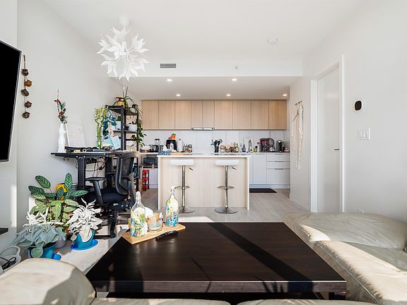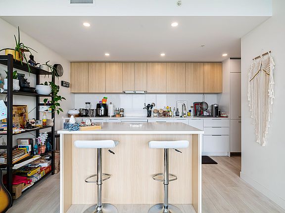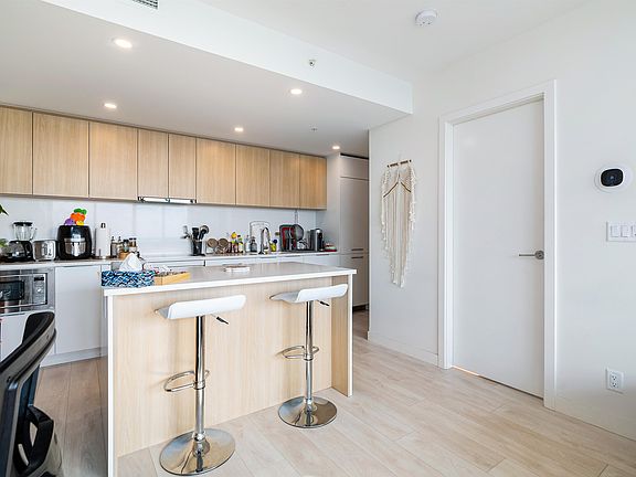 Pristine property in the renowned Linea building has everything you need, if you're looking for your first home, downsizing or the perfect investment. Covering over 580sq ft, with no wasted space. You'll find an expansive kitchen with tons of Caesarstone quartz counter space including an island with top of the line Blomberg and Midland and Fulgor appliances. Built in roller shades and air conditioning with smart thermostat. Spa like bathroom including beautiful built ins, and frameless glass shower. The balcony is oversized, large enough for a table or sectional couch and has unbelievable mountain views, all the way to Downtown Vancouver. In-suite washer dryer. The building is brand new - concierge, play area, parcel locker, gym & yoga room, dog wash & media room. Parking and locker.