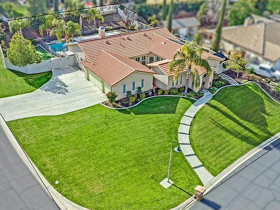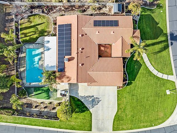 Explore the beauty of this magnificent 3-bed, 2-bath home on a corner lot in the prestigious Tuscany gated-community. As you step through the front door, you'll love the generous office space and separate family room. Moving down the hall, a spacious dining area awaits, providing the perfect setting for gatherings. The open kitchen features elegant hardwood floors, granite countertops, a stylish tile backsplash, and a generously sized pantry. The expansive living area is bathed in natural light from large windows and is complemented by a charming brick fireplace. The bedrooms are adorned with contemporary colors and offer ample closet space. Step outside to discover a backyard oasis with a covered patio section, a large side yard, and a sparkling swimming pool. The outdoor space also features a putting green, a leased solar system for energy efficiency, and the potential for trailer or car parking in the backyard. This home is a testament to both its potential and its inherent beauty!