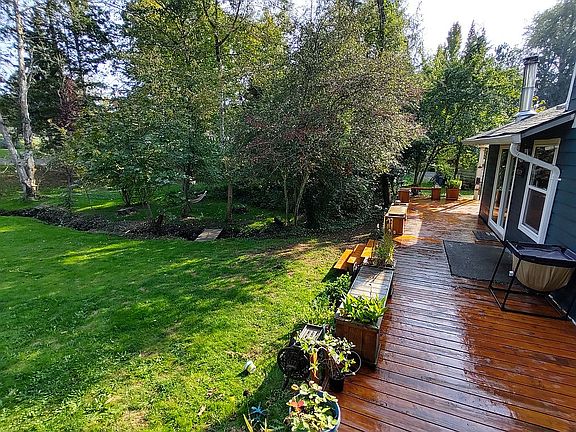 This 3-bedroom/2-bath home has a property with a gorgeous, secluded, forest-meadow quality that gives one the feeling of being in the countryside whilst being only a 5-minute walk down the bike path from the Orange Line MAX. Built in 1952 when the old Trolleys still served this area, the property is now accessed by a long, private gravel drive which isolates it from the hustle and bustle of the city. The property features direct frontage access to the beautiful Milwaukie Trolley Trail, a stream with footbridge, a massive 650 sq ft partially-covered, wraparound deck, a detached garage workshop with a finished home-office space, and a plethora of fruit trees (apple, pear and plum) as well as a large grape vine. The house features a great room with vaulted ceiling and wood stove, and a 2nd floor, vaulted-ceiling master suite with walk-in closet and full bath.