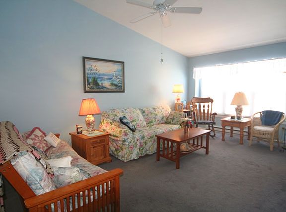 Clean, well maintained 2 bedroom, 1.5 bath Village Greene Quad with vaulted ceilings, gas heat and central air. Recently replaced all windows, new roof, converted to gas heat w/new furnace/AC unit, new hot water heater, new stove/oven and dishwasher. Almost maintenance free exterior and enclosed outside shower. This south facing property is very bright and sunny and is a great year round home in a great neighborhood and has been a very successful summer rental/second home in the past. Close to the Marina District and all of the restaurants and bars that Cape May has to offer; close also to Cape May Harbor and Cape May's Nature Center for sailing, kayaking and fishing. All appliances are included in the sale, including the stackable clothes washer/dryer. Lots of attic storage space. The sunny, comfortable open front porch is perfect for relaxing after the beach. Easy to see/call today.
