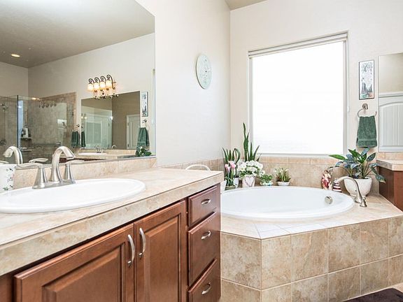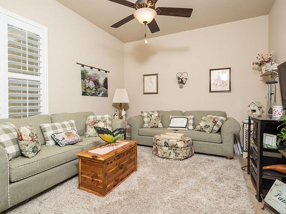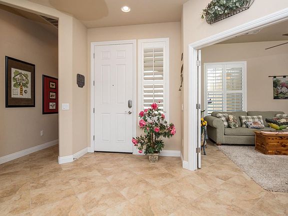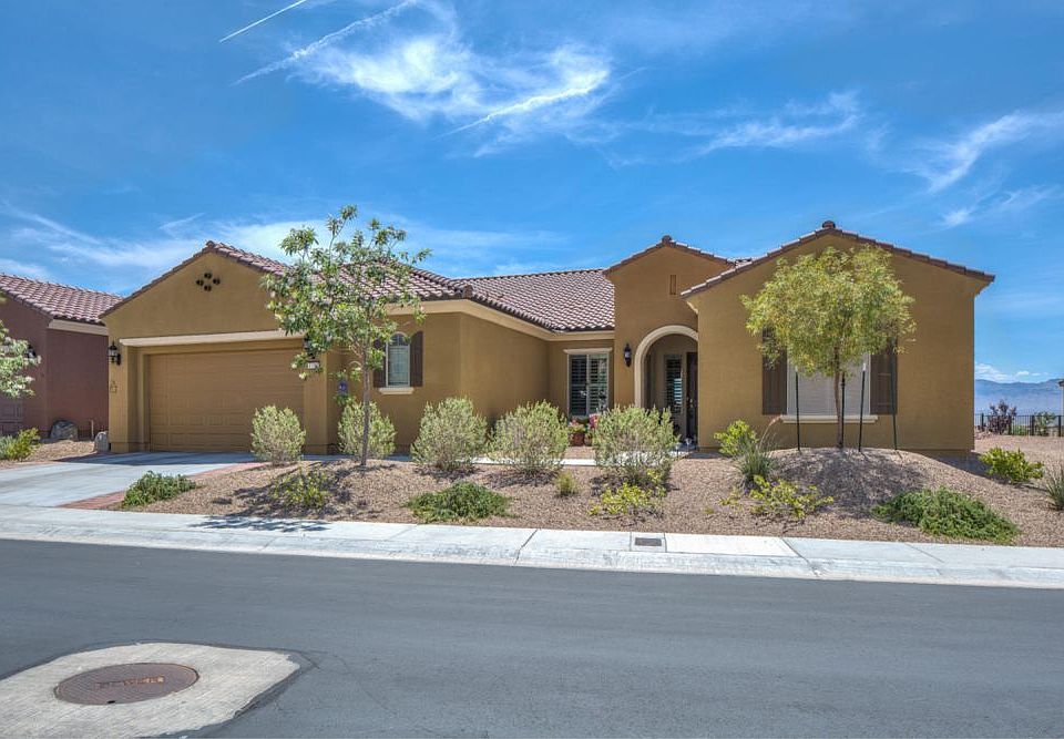 Sun City Mesquite Custom Primrose home 2659sf (SIDS PAID) with million dollar views!!! 2 Bdrm + Den 2.5 bath with stunning, breathtaking views from almost every room on a large .28 acre lot (new build, view lot premiums like this are being sold for over 200K). Low maintenance landscaping with waterfall, flowing river and a 3 hole putting green help you relax. You can see for miles. Highly upgraded with features such as crown molding, extended tile laid on the diagonal, custom paint tones, gorgeous granite, rich cabinetry, premium stainless steel appliances, water softener, solar sun screens, ceiling fans in every room, custom window coverings throughout, and a climate controlled (AC&Heated) workshop in garage. And so much more. Plenty of room to add your Pool or Casita! Ask Goody how you can own this home with 1/2 down with no payments for life! SIDS PAID IN FULL