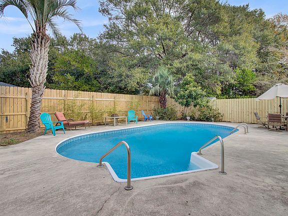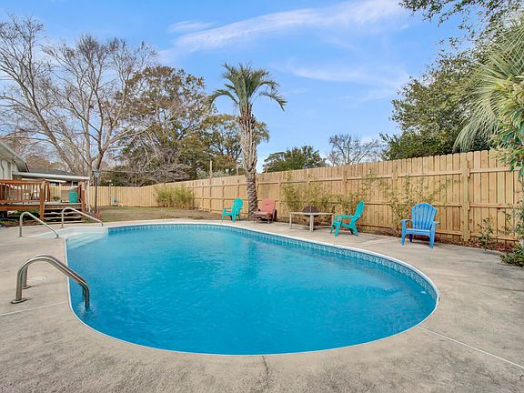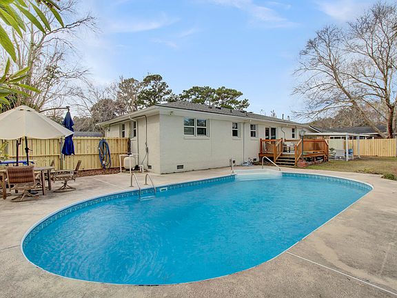 Looking for a turn-key, fully furnished property with no HOA & no flood insurance where you can short term rent the mother-in-law quarters to cover your mortgage? Nestled into established Whitehouse Plantation in the heart of James Island, this 1960s charmer is centrally located just 5 miles from Historic Downtown Charleston & the sandy shores of Folly Beach. The home is zoned for highly sought & award-winning Harbor View Elementary & less than a mile from Camp Road Middle school. Situated on almost 1/4 acre fenced lot with an in-ground pool, this brick ranch boasts modern updates while maintaining much of its original retro character. Enjoy an open floor plan, spacious kitchen, neutral paint throughout & dual owners' suites (1 of which is a ''mother-in-law'' suite with separate entry).Again, no HOA, so bring your boat & RV! Walk less than 1/2 mile to a plaza housing popular Paisano's Pizza & Smoky Yolk Cafe! No flood insurance required!!! Pool measures 16' x 32' & goes from a brief 3' to expansive 8' depth...diving board was removed by prior owner. Pool maintenance person lives on corner of Briarfield & Gettysburg (super convenient). Updates in 2021-2023: New HVAC, pool liner, kitchen, 1/2 bath, mother-in-law quarters with large en-suite bath, spray-foamed attic, oak hardwoods married in to match originals, sod in front & back, slider doors to new deck, light fixtures, all appliances, split unit, carport removed, plumbing & electrical updates, interior/exterior paint, removed shed & added new privacy fence in December 2023 (this month). Ready for location, location, LOCATION?!? This charmer is awaiting its new owners!