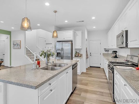 Supremely stylish and upgraded, this exquisite single-family residence boasts designer finishes throughout its four bedrooms and three bathrooms, offering ample space and luxury for comfortable living. Upon entering, you're greeted by a welcoming open floor plan, perfect for entertaining guests or relaxing with family. The modern kitchen is a chef's delight - actually functional with plenty of counterspace, walk-in pantry, and so much storage! Your primary bedroom is a serene retreat, complete with an en-suite bathroom featuring a luxurious soaking tub, separate shower, and dual sinks. Three additional bedrooms provide versatility for guests, home office space, or a growing family. Step outside to the beautifully landscaped backyard oasis, ideal for outdoor gatherings and enjoying the California sunshine. With a patio area perfect for BBQs and a low-maintenance turf lawn, this backyard is sure to be your favorite spot for relaxation!
