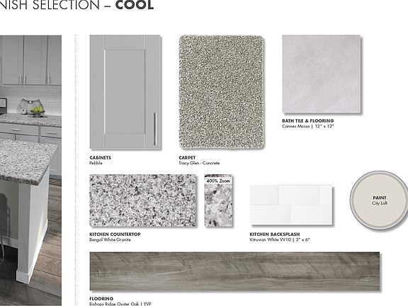 Purpose the Newport's sizeable flex space into the media room you've always wanted. A walk-in pantry and kitchen island make it easy to feed a group. Pebble cabinets with grey granite countertops, grey EVP flooring and carpet come in our Cool package.