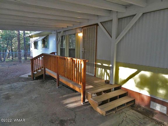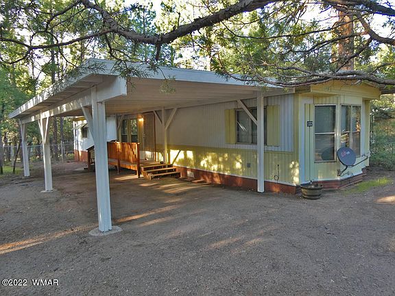 PRICE REDUCTION! Well-built Pinetop manufactured home in the tall pines is ready for you. 3br/2ba 1,140 sf. Kitchen has near-new range, refrigerator and plumbing. BONUS: large sunny 16x10 Arizona room. Large owner's suite has private bathroom w/shower and tub. Large front bedroom/office w/direct access to BR 2. Washer/dryer hookup in laundry room. Large wood beam carport w/covered parking for multiple cars and wood deck. Tie-downs in place. Chain link fenced back yard. Water, sewer and electric available. Great quiet neighborhood yet close to restaurants and shopping. 35 minutes to Sunrise Ski area and the National Forest. Ready for move-in or for an investor to prepare as an immediate rental property.