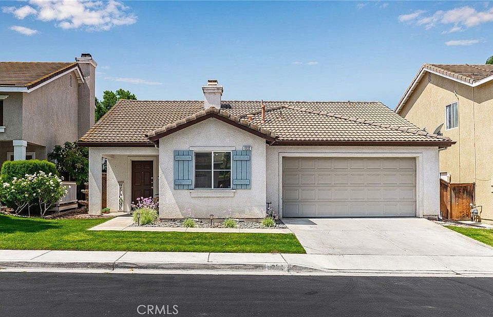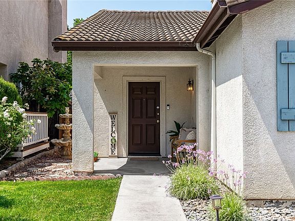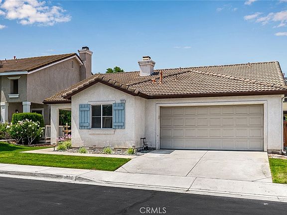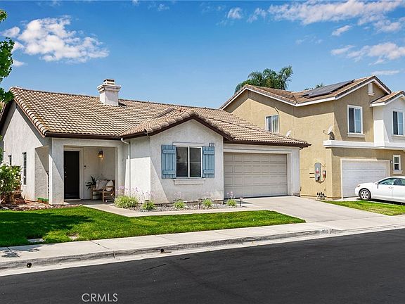 Single Level 3 bedroom, 2 bathroom home located in the desirable Lyon Reflections Community of Corona. Great open floor plan! Enter to Living Room with vaulted ceiling, tiled gas fireplace and an adjacent dining area with large slider that opens to covered backyard patio perfect for relaxing or entertaining. The kitchen features oak cabinets, white tile countertops and includes built-in microwave, dishwasher, freestanding gas oven/range and refrigerator and large window that looks out to backyard. The spacious primary bedroom suite has vaulted ceiling, slider that leads out to backyard, private en-suite bathroom with dual sinks, separate bath/shower and toilet room, new flooring and large walk-in closet. There are two other nice size bedrooms with large windows letting in lots of natural light. The hallway bathroom has been updated with new flooring, bath tub/shower and vanity and offers convenient access from two sides. Home features indoor laundry area, ceiling fans, recessed lighting, laminated wood floors in bathrooms, home has been recently re-piped and newer interior paint throughout most of home. Two car attached garage with direct access. Community play area and beautiful gated pool and spa are right down the street. Home is conveniently located within walking distance to Corona Ranch Elementary School, Village Park, and in close proximity to shopping, restaurants and 15 and 91 freeways.