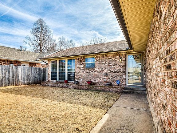 Check out this gorgeous MOVE-IN READY home! You will be blown away as soon as you enter the foyer and see the beautiful engineered hardwood flooring that flows throughout most of the home, especially the very spacious living areas. You can see from the photos that living room is spacious enough to have two living areas. This space provides such a cozy and warm feeling and then add to it the floor to ceiling brick-feature fireplace that completes this space. The amazing kitchen features granite countertops, tiled backsplash, built-in microwave, which is always a bonus, plenty of cabinets for storage, a peninsula for additional bartop seating, AND as another bonus, the stainless refrigerator STAYS with the home as well. Check out the spacious primary bedroom with its elegant black and gold accent wall, as well as the updated en suite. One of the main features of the home is the enclosed sunroom! There are so many possibilities with this spacious area which is an additional 170sf of space that is NOT included in the total square footage. Make this area a cozy den, game room, reading room, or office area as you have tons of natural light coming in through the large windows. Don't forget that this home sits on a CORNER LOT, so you are going to have more space than the average lot, especially in the spacious backyard equipped with large deck. This space is perfect for entertaining large groups of friends and family. This home is also perfectly located near schools, parks, highways, and only 10 minutes away from Tinker Air Force Base and 12 minutes away from Downtown OKC. Oh, and did I mention that the washer and dryer also STAY!! This home is a must see!! Buyers are to confirm all information including schools.