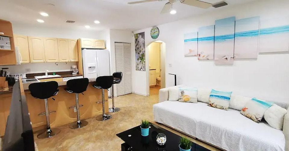 Available. Not furnished. 1 bedroom, 1 bathroom, central air, dining room and kitchen, with washer and dryer, inside the unit, remodeled bathroom with tub, terrace with BBQ area. Super comfortable parking space. Residential and quiet neighborhood, near the beach. This unit is a 7 minute drive to the beach, a 4 minute drive to The Galleria Mall in Fort Lauderdale. Located very close to the Wilton Manors financial and entertainment area. led lighting, smart lock with wifi. Includes high speed internet. The best cost-benefit ratio, comfort and privacy. Includes garden maintenance, water service and high speed internet.