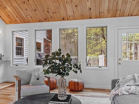 This fresh and inviting traditional Colonial abutting conservation land offers peaceful views of natural surroundings out every window. Brilliantly renovated and updated including new kitchen w/granite counters, large center island, plentiful cabinetry and thoughtful customizations all open to recently finished sun-filled family room with vaulted ceiling, oversized windows and breathtaking views. Enjoy hardwood floors throughout the fantastic floor plan including large living room and inviting dining room plus first floor office/den with handsome fireplace. Upstairs find 4 spacious bedrooms including a primary suite & two renovated baths. The finished lower level with recently added third full bath is great bonus space. With a young roof, new windows, a heated third garage bay, young boiler and central air, this house truly has it all. Well located nearby to elementary and middle schools, a short bike ride to White Pond, Bruce freeman rail trail and near to shopping and restaurants!