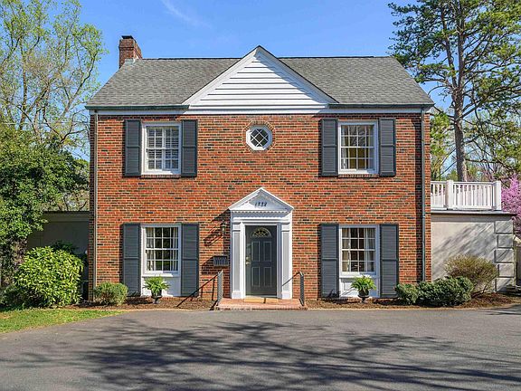 Nestled behind boxwoods on a large circular drive, this charming, traditional Rugby Road home is minutes to UVA, Historic Downtown, area schools, hospitals, shopping, and parks. The two-story brick home features a spacious living room with a beautiful fireplace and large windows allowing for abundant natural light. A well-appointed office/library with built-in bookcases is surrounded by windows and outfitted with Ting fiber internet. A bright dining room flows seamlessly into the kitchen and breakfast room with a large glass door that opens to a sunny deck and level rear yard. A cozy den, located off of the breakfast room, includes large storage closets and access to the recently paved driveway. The second floor features a master bedroom with a private roof deck, a newly renovated master bath with walk-in closet as well as two additional bedrooms and a bathroom. The terrace level offers a large family room or in-law suite with a small bathroom, kitchenette, additional storage space, laundry room and a private entrance. Freshly painted with many recent improvements, this versatile home with great outdoor spaces is ready for its next owner to enjoy.