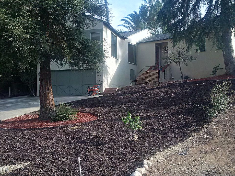 This home has been extensively updated both inside and out in the last 5 years. The roof was replaced in 2014, the drip sprinkler system updated in 2013, and new mulch laid in the front yard in 2015. Looking out either of the nearly floor to ceiling windows (one of them recently replaced with extra strong safety glass) in the family and living rooms gives the feeling of being in a tree house. The kitchen was completely expanded and remodeled in 2013 with custom maple Shaker-style cabinets made locally, and features all new stainless steel appliances, a patterned metal tile back splash, and a Delta Touch 2O faucet. There is also a garden window above the kitchen sink and a sky tube above the large butcher block peninsula, meaning that the space is flooded with beautiful natural light all day. The living, dining, and family rooms flow into one another making it ideal for family living and gatherings with friends. The patio cover and flooring have both been replaced in the last four years, and the large level turf play area just off the patio is water wise and easy maintenance. The home has three bedrooms (the large and bright family room is currently being used as a 4th bedroom), all with Closetmaid closet systems installed. Both bathrooms have new showers and floors (2011), one featuring retro black and white floor tile and original 1940's pink wall tile, the other warm and contemporary with natural stone flooring and a granite counter top. The laundry is conveniently located in the hallway with easy access to all bedrooms and has to-the-ceiling shelving on two walls. The hardwoods throughout the home are originals. A centrally located whole house fan takes advantage of cool southern California nights. There is also a large storage room (accessible from the landing on the front stairs) ideal for holiday and travel storage. Two fireplaces (the one in the family room featuring both stone and petrified wood) make for cozy nights gathered up at home. >>>>FOR SALE THROUGH REALTOR<<<< - This house is actually for sale through a realtor. Please contact Grace LeFevre at 909-210-1424. (Apologies - we listed it incorrectly and don't know how to change it.)