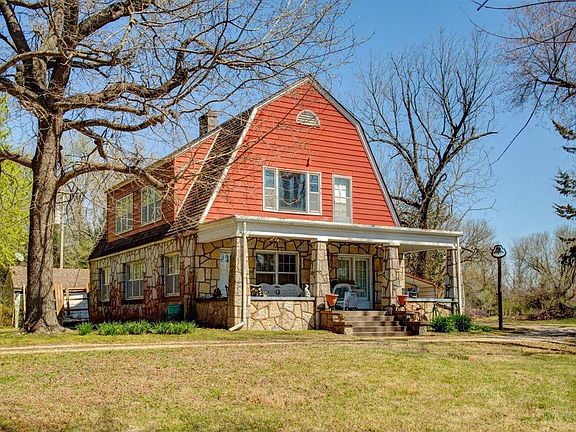 The deer wander fearlessly along these lush Hickory Creek banks. Watch them graze from the 9x30 covered porch of this charming stone home with a Mansard roof. The 9x18 enclosed porch adjacent to the double carport is perfect for handling groceries. The HUGE bedrooms have large cedar-lined walk-in closets and window seats with storage. Formal dining room features original hardwood floors (which extend into carpeted living room and possibly BRs) and two quaint built-in corner hutches. The main floor bathroom has a walk-in shower.