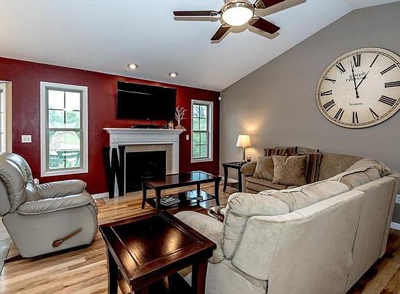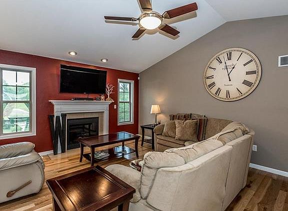YOU ARE HOME! Ranch w/ finished walk-out has it all. HICKORY hardwood and ceramic tile throughout. OPEN kitchen boasts MAPLE cabinets, Solid Surface counters, WALK-IN pantry and STAINLESS appliances. DINING area walks out to deck for ease of entertainment. MASTER bath has double vanities. SEPARATE tub and shower. LOWER level has a bar w/ rough-ins for buyer to complete with building materials that stay. FAMILY room is super spacious w/ pool table area plus family time space. Lower level bath is great and has a full CERAMIC shower. Additional 19 X 8 room is studded out and insulated. Home offers an abundance of quality including PELLA storm doors. Over 2,000 finished area of square footage.