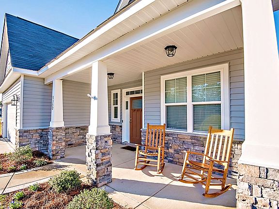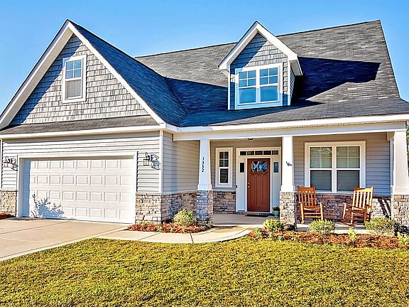 River Glen is only a 15 min drive to Ft. Bragg, all highway and country roads; and an 8 min drive to Downtown Fayetteville. Classic front porch, Craftsmen style home with 2 story grand foyer, laminate wood flooring throughout the dining room to your right with cute porthole windows, chair rail and unique lighting. Kitchen with granite countertops, ivory cabinets, stainless steel appliances and elevated bar. Breakfast nook opening to a great room with gas Master with spacious bathroom, separate shower & garden tub. Good-sized Walk-in Closet. Downstairs Laundry & Mudroom with storage cubbyhole. Upstairs walk into a large loft area with 2 bedrooms, bathroom and a bonus room with bar. Outside in the backyard, you find a covered patio, ceiling fan and a large firepit area. Double Garage