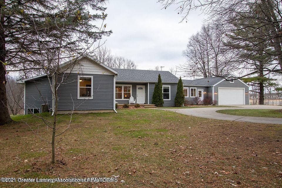 Attention land lovers, hunters OR developers, take a look at this rare opportunity in DeWitt! Located on over 23 sprawling acres, this home is perfect as is, a single family residence or potentially a future development. Enjoy an updated ranch home with over 1800sqft, 3 bedrooms, 2 full baths and 4 car attached garage with front and rear access. The master suite features a beautiful view of the yard, window seat, private bath with heated floors, dual sinks and oversized walk-in closet. This home has been updated both inside and out including fresh paint, granite counter tops, stainless steel appliances, hardwood floors, furnace, windows, water heater and more! The lower level is stubbed for a bath, features a brick fireplace and a room that is perfect for a den or a 4th bedroom. The lower level is stubbed for a bath, features a brick fireplace and a room that is perfect for a den or a 4th bedroom with wall to wall windows and electric heat. With many extras including a breezeway connecting the house to the garage, circular driveway, large deck, fenced back yard with dog run and lots of nature galore, who wouldn't want to call this home?