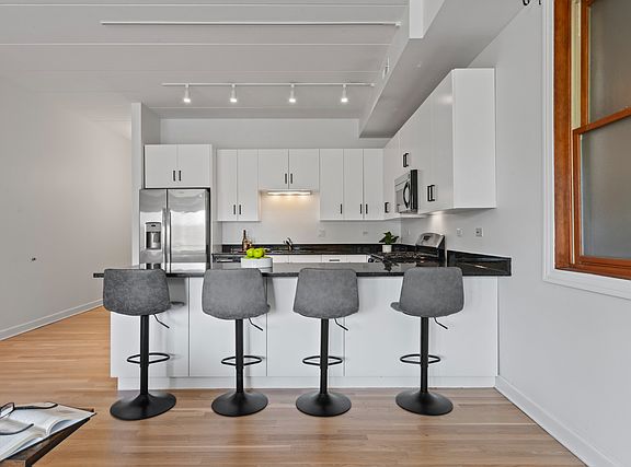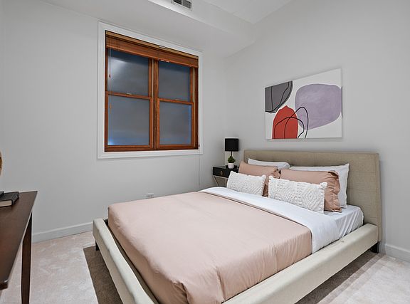 Flooded with natural light, this extra-wide 3-bedroom, 2-bath home offers 10' ceilings and over 1700 square feet of living space in an intimate, well-maintained boutique elevator building in the heart of the West Loop. The open-concept layout features a Chef's kitchen complete with stainless steel appliances, granite countertops, a wine fridge, and a breakfast bar with seating for four. The spacious living room includes a cozy fireplace and opens to a large private terrace-perfect for relaxing or entertaining. The primary suite boasts a walk-in closet, private balcony, and an ensuite bath with dual vanity & jacuzzi tub. Two generously sized additional bedrooms and a second full bath are located just down the hall. One exterior parking space and a storage unit are included. Recent upgrades include: new carpet in the secondary bedrooms, new hardwood flooring in the primary bedroom, refinished floors throughout, and fresh paint on walls, cabinets, and doors. This pet- and rental-friendly building features concrete ceilings and is ideally located just two blocks from Skinner Elementary, a park, and the West Loop 569 Dog Park. Enjoy close proximity to Randolph Street and Fulton Market's renowned dining and shopping, plus convenient access to public transit, highways, Whole Foods, Mariano's, West Loop Market, and the United Center. Explore the property in 3D-click the 3D button for a virtual tour and walk through every detail. 1 month security deposit. Parking is available for an additional $200/month.