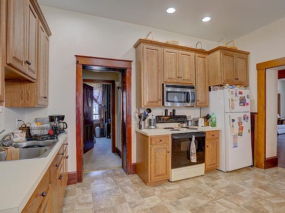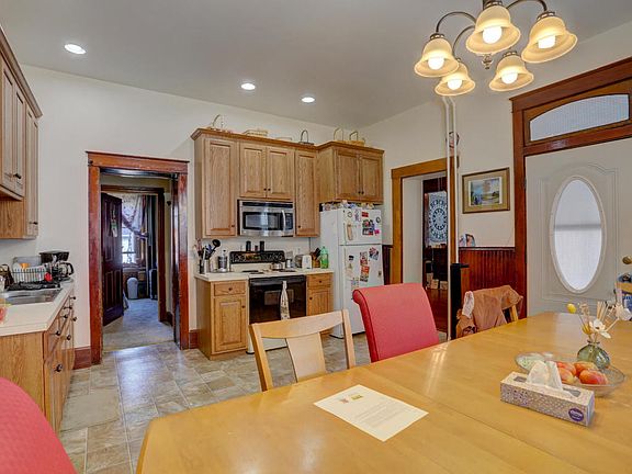 Spacious two unit with 3 car garage. Good opportunity to live in one and rent the other unit. Unit A new kitchen, new wood flooring, some new windows, or use both as rentals. Detached building with large lot, separate heat & electric. Second floor rent should be more (17 yr tenant). Garage rent projected. Bring offers.